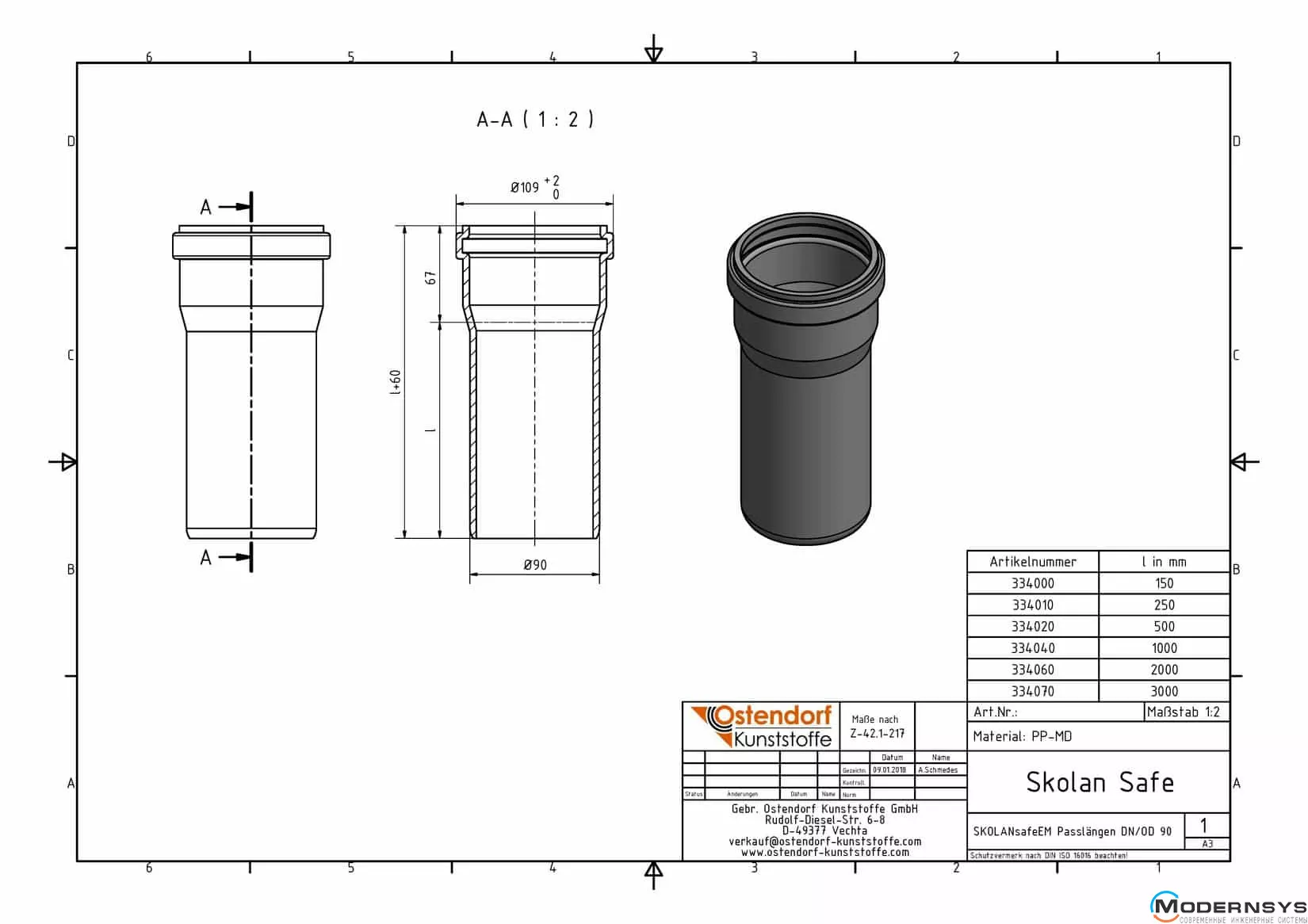 Бренд: Ostendorf; Тип товару: Труба; Вид каналізації: Внутрішня; Тип каналізації: Безшумна; Колір: Світло сірий; Діаметр (мм): 90; Товщина стінки (мм): 4.5; Довжина (мм): 250; Матеріал: Поліпропілен PPR; Виробник: Німеччина