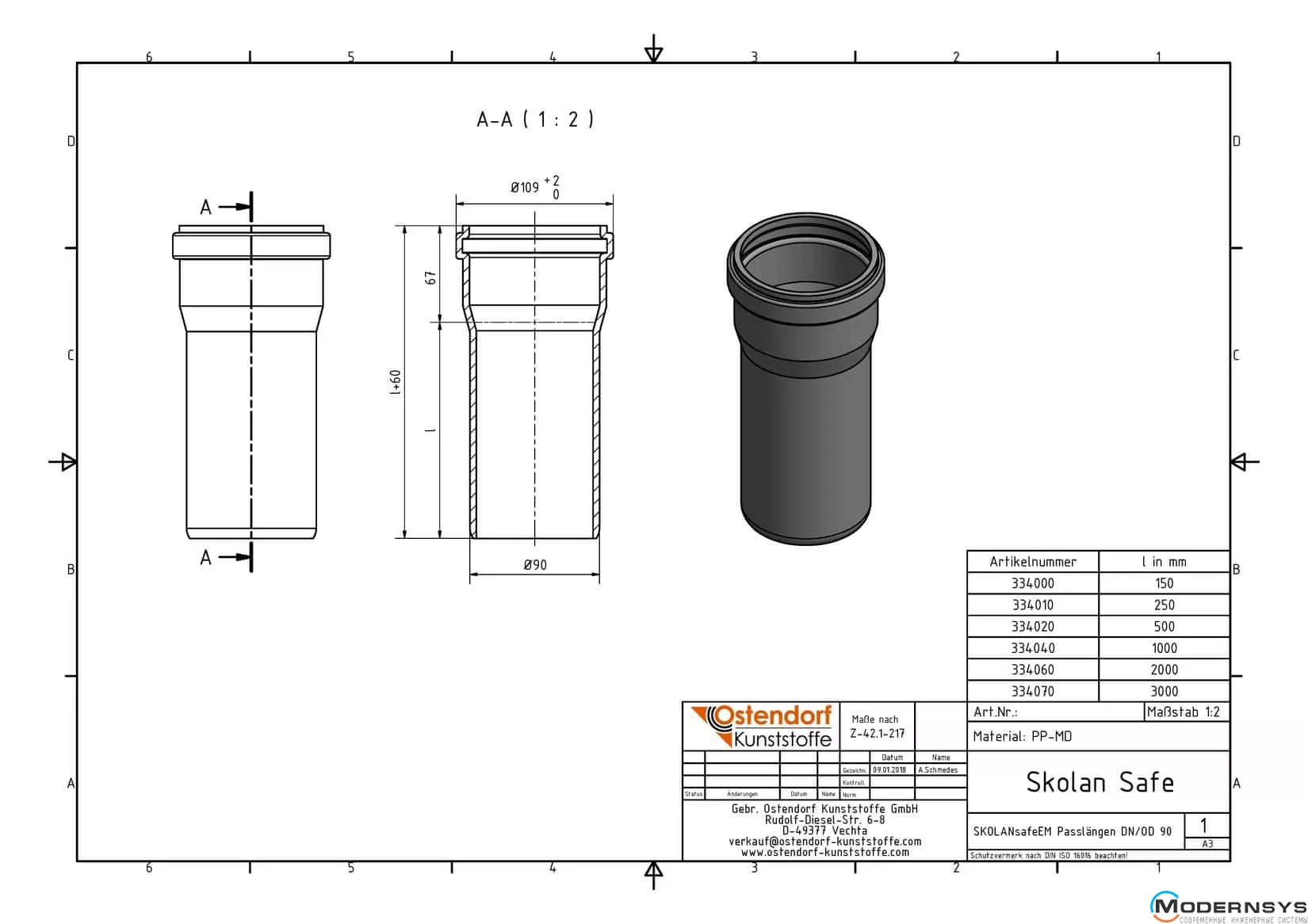 Технічні характеристики: Труба Ostendorf (Остендорф) Skolan db 90х3000 (334070)