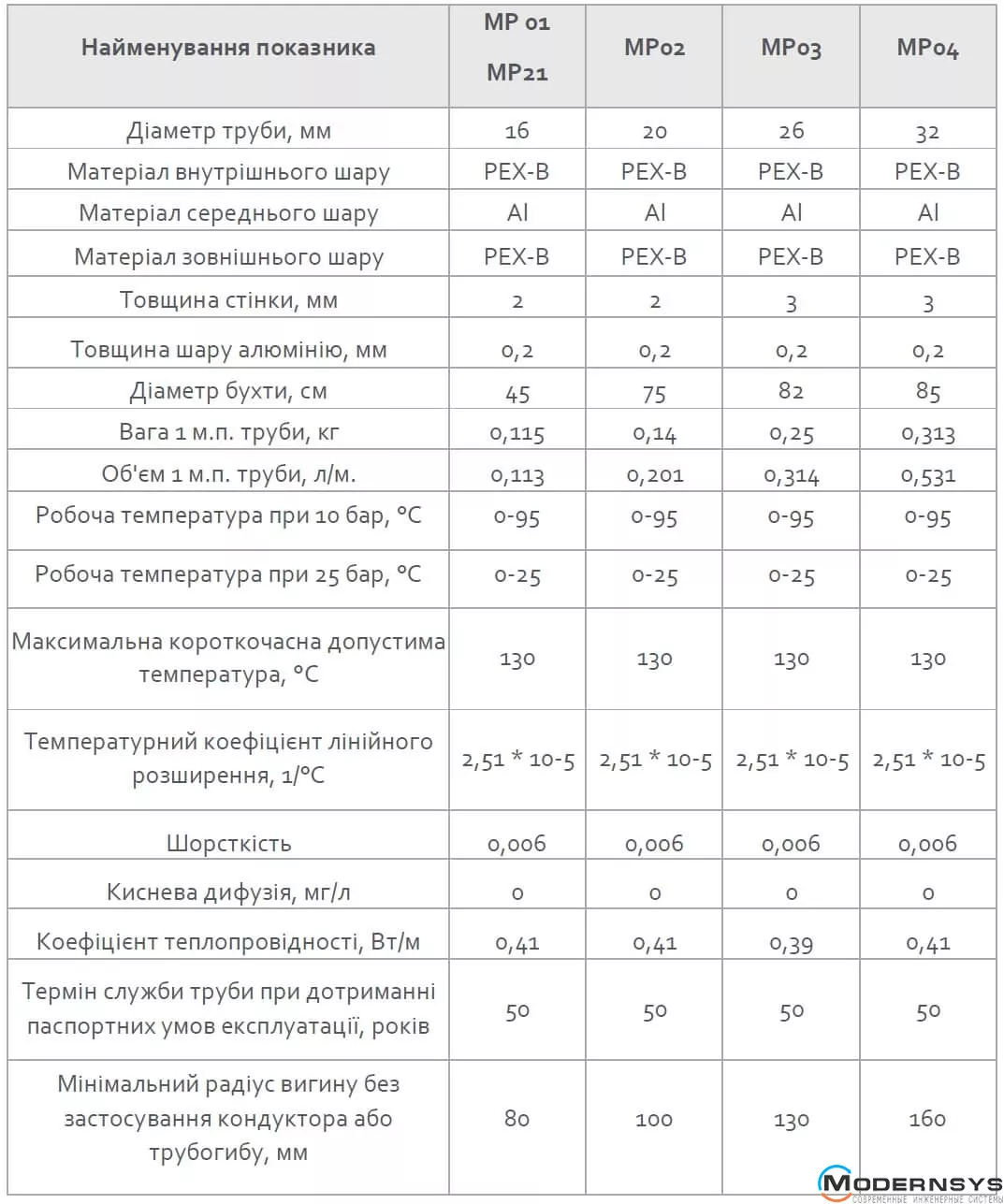 Технічні характеристики: Труба металопластикова FADO (Фадо) 20x2.0 100м