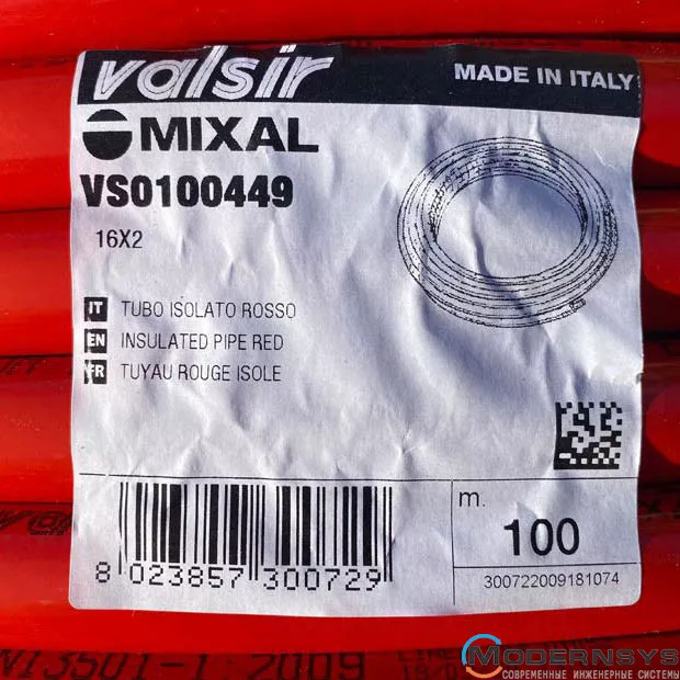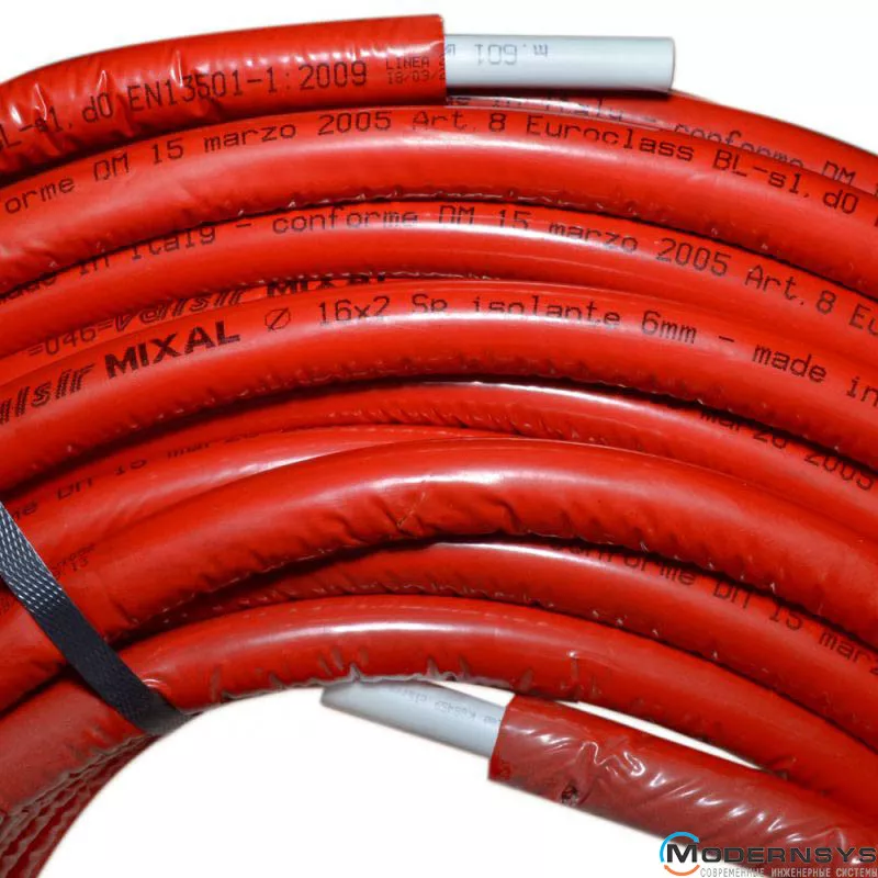 Технічні характеристики: Труба Valsir (Валсир) в ізоляції металопластикова MIXAL Ø16 х 2,0 мм ЧЕРВОНА (бухта 100 м)