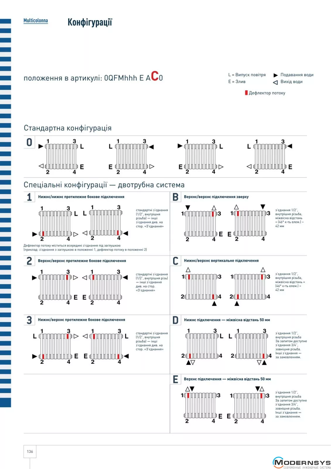 Технічні характеристики: Трубчастий радіатор DeLonghi Multicolumn H=2000 3-12 (секцій) конфігурація 0 (бічне 1/2") RAL9016
