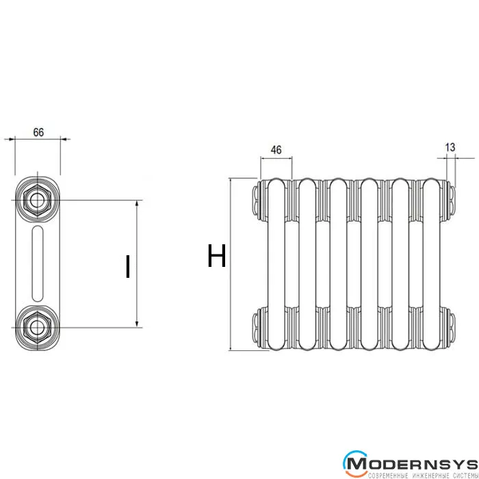 Трубчастий радіатор DeLonghi Multicolumn H=570 3-28 (секцій) конфігурація 0 (бічне 1/2") RAL9005МATT