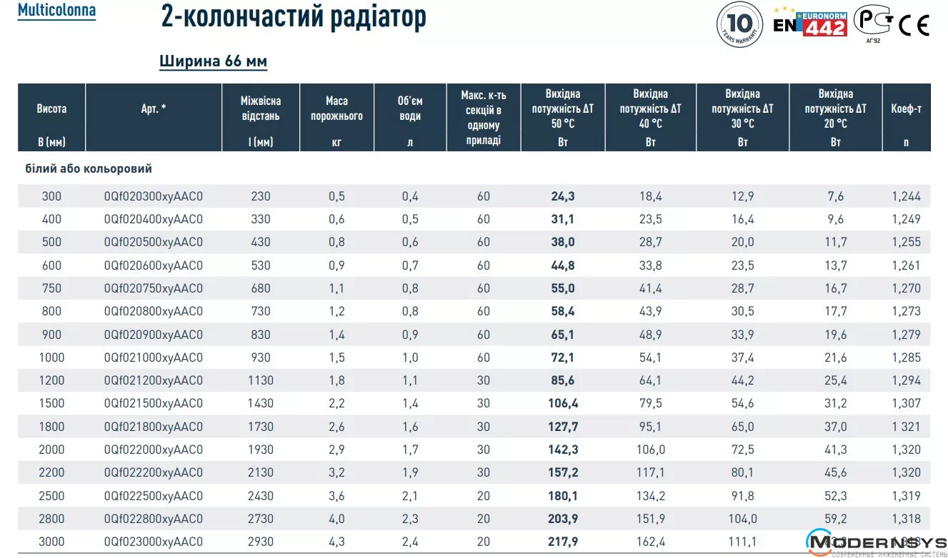 Трубчастий радіатор DeLonghi Multicolumn H=300 3-2 (секцій) конфігурація 99 (бічне 11/4") RAL9016 нижнє підключення, Підключення радіатора: Бокове, Виконання: Горизонтальний, Колір: Білий, Діаметр вхід/вихід: 1 1/4", Висота (мм): 300, Ширина (мм): 92, Глибина (мм): 107, фото Трубчастий радіатор DeLonghi Multicolumn H=300 3-2 (секцій) конфігурація 99 (бічне 11/4") RAL9016 нижнє підключення