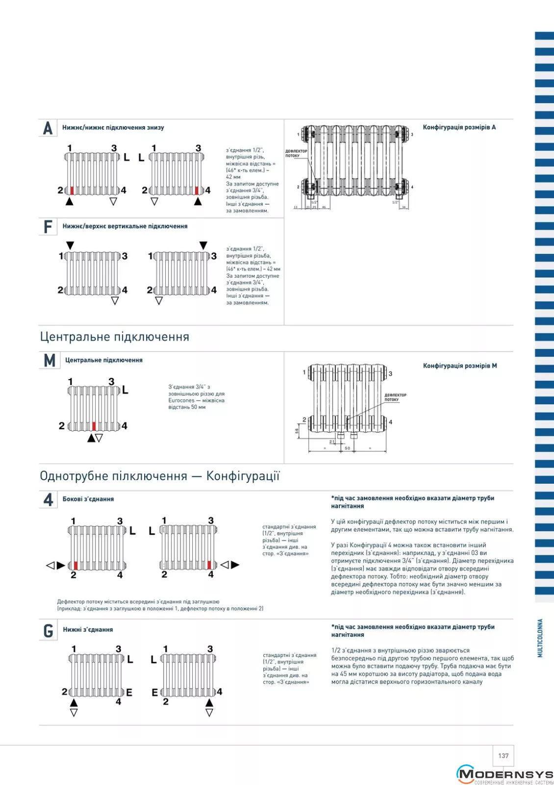 Опис: Трубчастий радіатор DeLonghi Multicolumn H=570 3-26 (секцій) конфігурація 0 збоку 1/2") RAL9016