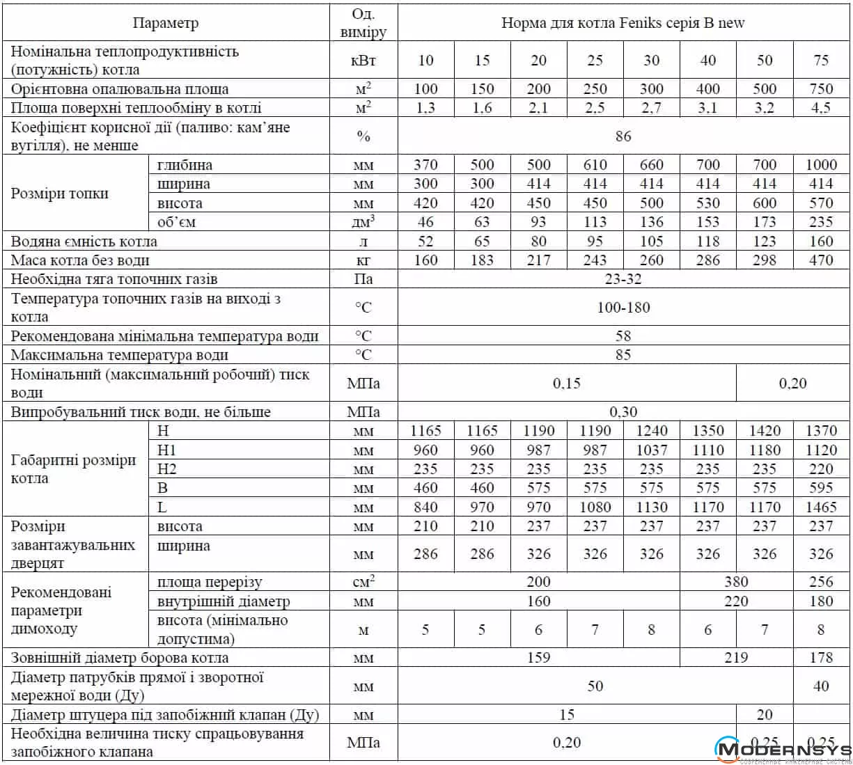 Технічні характеристики: Твердопаливний котел Feniks (Феникс) серія B Plus NEW 30 кВт з автоматикою та вентилятором