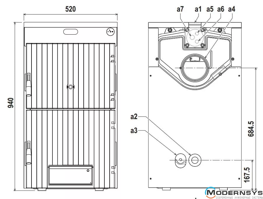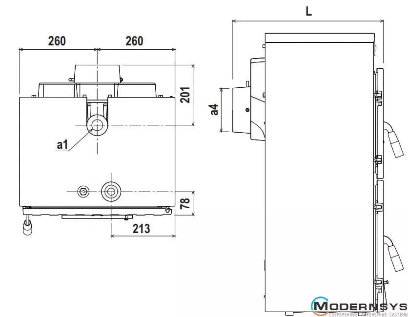 - специфічна геометрія секції котла, малий об'єм води забезпечують високий рівень теплообміну та низьку теплову інерцію;