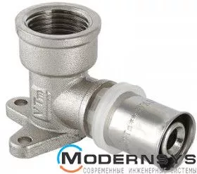 - Фітинг-кутник з кріпленнями складається з корпусу, прес-гільзи, відведення з внутрішнім різьбленням, ущільнювальних кілець та обойми;