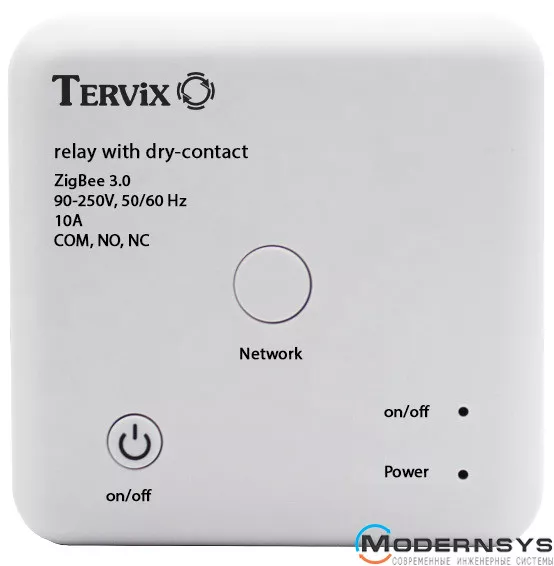 Tervix Pro Line ZigBee Dry Contact On/Off - це розумний перемикач (реле з "сухим" контактом), що призначається для включення та вимкнення подачі напруги/керуючого сигналу.