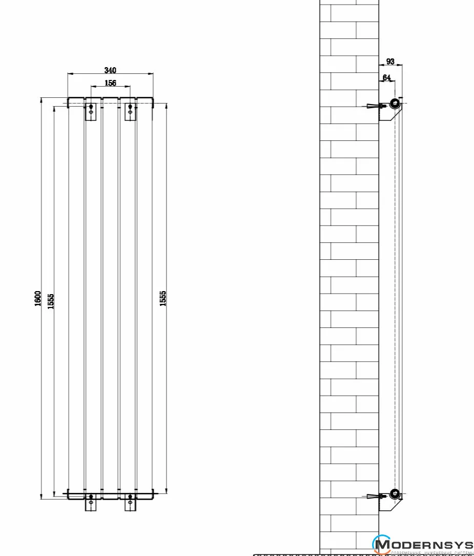 Технічні характеристики: Вертикальний дизайнерський радіатор ARTTIDESIGN (Арттидизайн) Livorno 5/1600/340/50 сірий матовий
