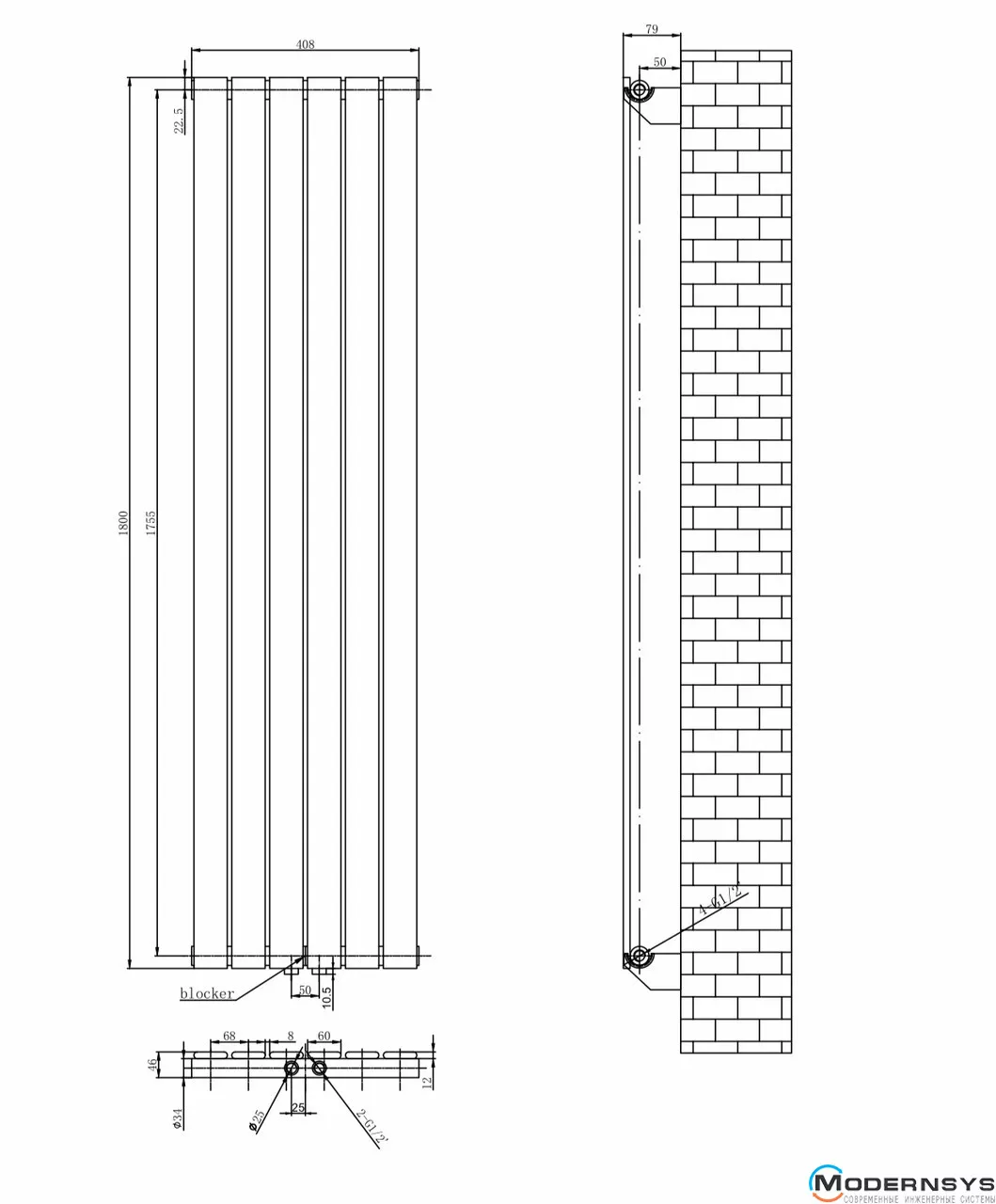 Технічні характеристики: Вертикальний дизайнерський радіатор ARTTIDESIGN (Арттидизайн) Livorno 6/1800/408/50 чорний матовий
