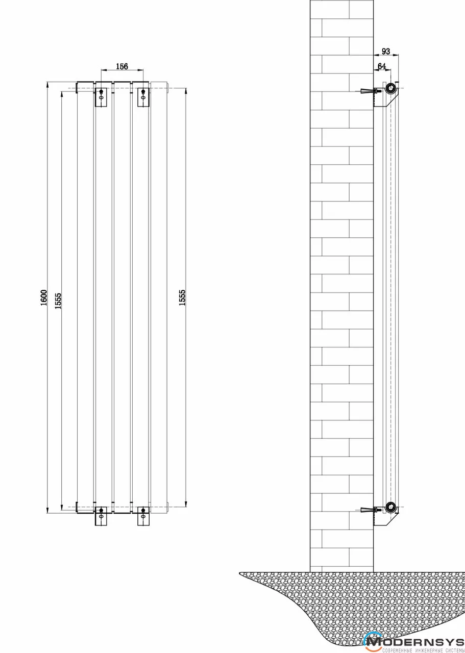 Технічні характеристики: Вертикальний дизайнерський радіатор ARTTIDESIGN (Арттидизайн) Livorno II 5/1600/340/50 сірий матовий
