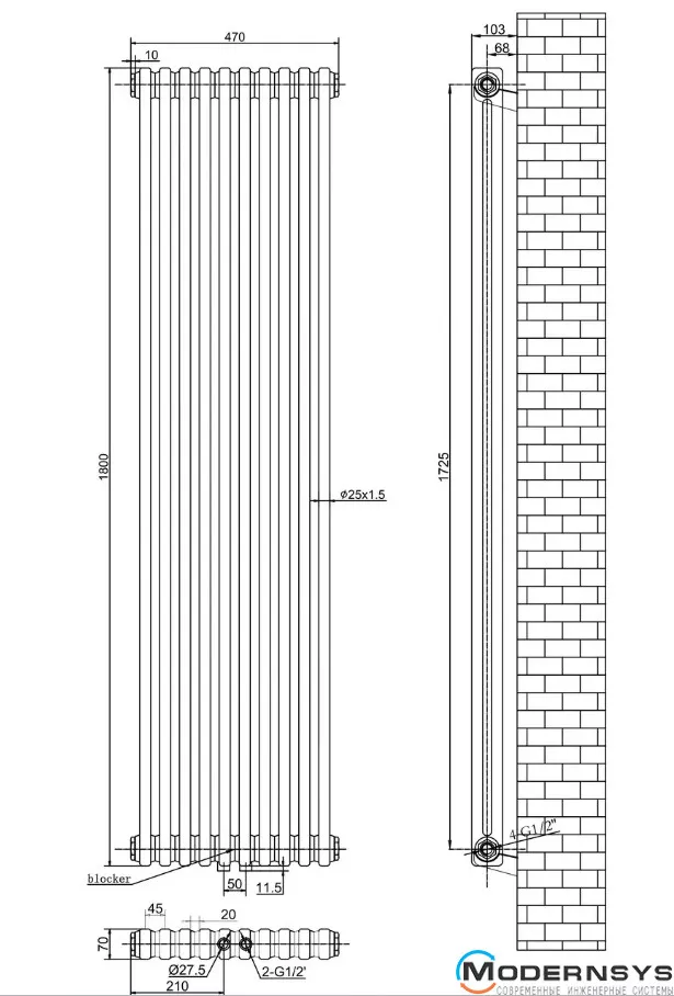 Технічні характеристики: Вертикальний радіатор опалення ARTTIDESIGN (Арттидизайн) Bari II 10/1800/470/50 чорний матовий