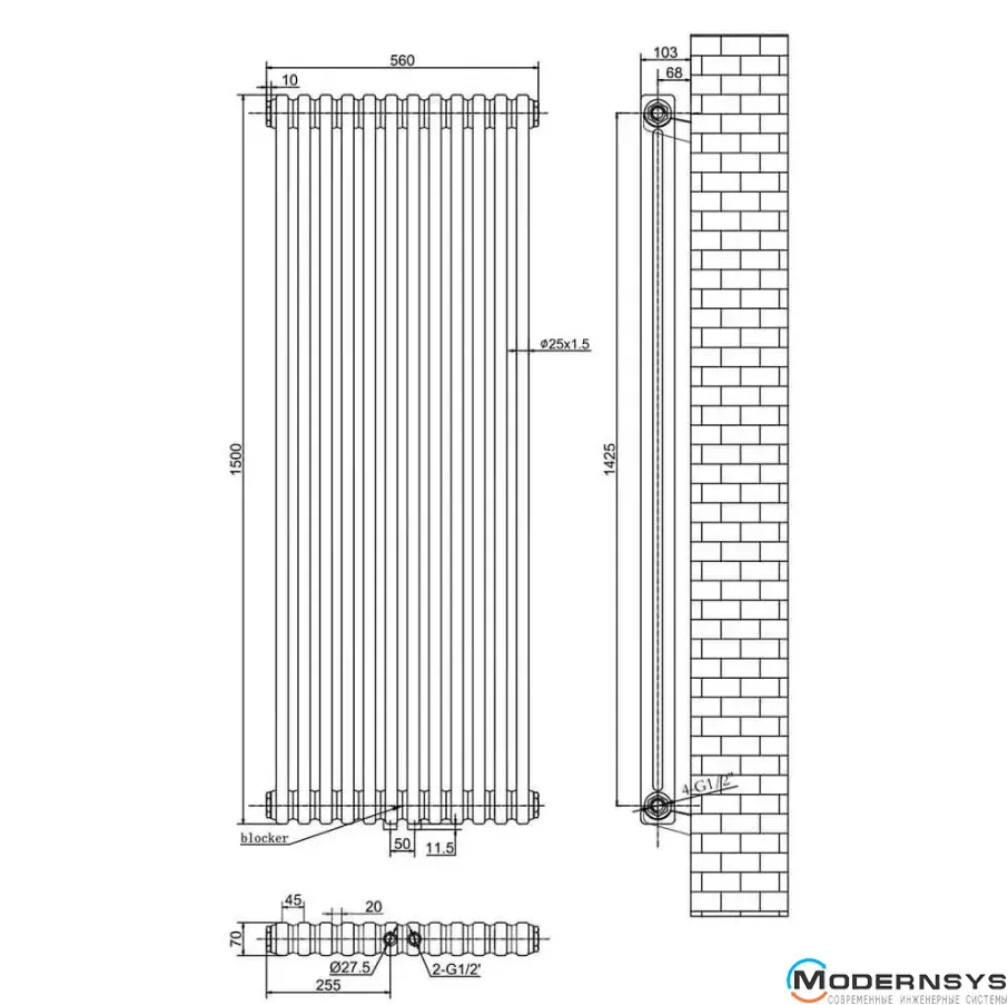 Опис: Вертикальний радіатор опалення ARTTIDESIGN (Арттидизайн) Bari II 12/1500/560/50 білий матовий
