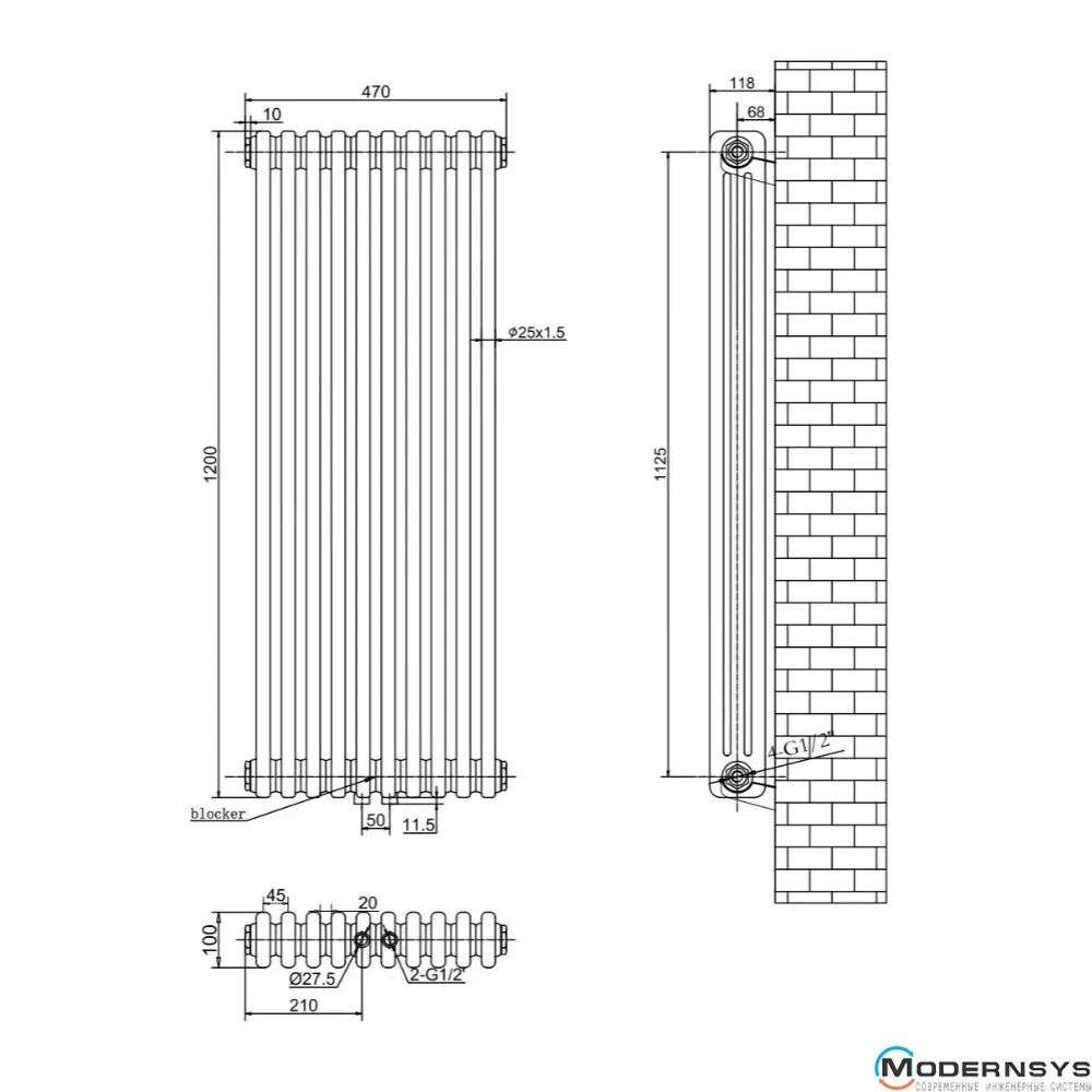 Технічні характеристики: Вертикальний радіатор опалення ARTTIDESIGN (Арттидизайн) Bari III 10/1200/470/50 білий матовий