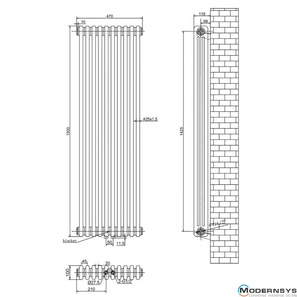Технічні характеристики: Вертикальний радіатор опалення ARTTIDESIGN (Арттидизайн) Bari III 10/1500/470/50 білий матовий