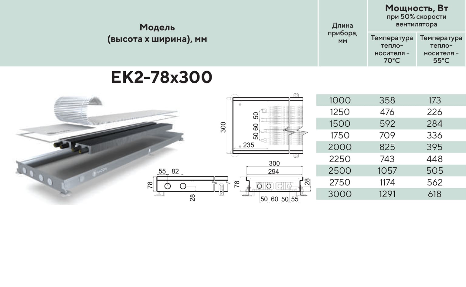 Технічні характеристики: Внутрішньопідлоговий конвектор U-CON (Юкон) EK2 380/3000/120