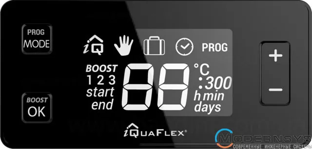 BANDINI SMART - це унікальна серія водонагрівачів з повним захистом від протікання, екологічним пінополіуретаном та зовнішнім зовнішнім кожухом водонагрівача. Основною особливістю цього бойлера є його інтелектуальний цифровий термостат IQUAFLEX, який розраховує щоденну потребу у гарячій воді, аналізує та планує нагрівання води для комфорту користувача та економності. До обов'язків термостату IQUAFLEX входить: