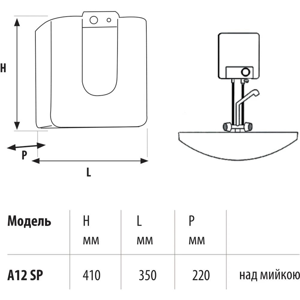 Електричний накопичувальний водонагрівач на 12 літрів, для встановлення на стіну. SP - нижнє підключення для монтажу над мийкою. ST - верхнє підключення для монтажу під миттям. Особливості: невеликі розміри, щоб забезпечити можливість встановлення також у невеликих приміщеннях, емальований внутрішній бак, теплоізоляція в пінополіуретані, магнієвий анод, мідний нагрівальний елемент, запобіжний клапан.