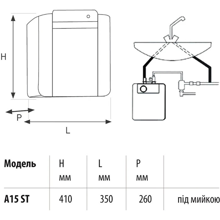 - Обсяг цього бойлера становить 15 літрів.