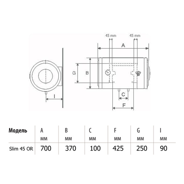 Технічні характеристики: Водонагрівач Bandini (Бандини) Braun 45 л горизонтальний 2,0 кВт - SLIM 45 OR