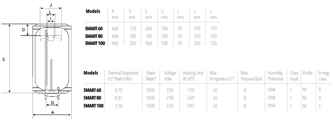 Технічні характеристики: Водонагрівач Bandini (Бандини) Braun 80 л 2,0 кВт - SMART 80