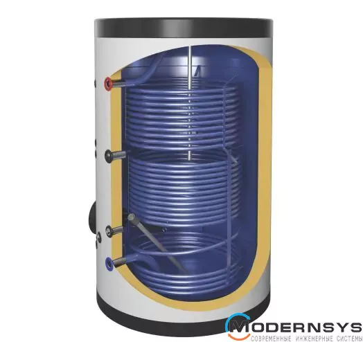 Підлогові бойлери непрямого нагріву. Внутрішній сталевий бак з покриттям із цирконієвої емалі. Комплектація: один магнієвий анод, комбінований запобіжний клапан, термоманометр. Оболонку з армованого ПВХ матеріалу мають ємності 300-1000 л. Маркування: S - вбудований теплообмінник (S2 - 2 шт). Водонагрівач, працює від електрики і від гелеосистеми! Завдяки вбудованому змійовику забезпечує економію електроенергії!