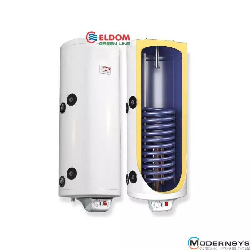Монтується Елдом Грін Лайн Евріка на стіну у вертикальному положенні та має ліве підключення трубопроводів. 2 вбудованих ТЭН "сухого" типу служать для підігріву води в бойлері, якщо продуктивність основного джерела нагрівання води зменшується. Теплоізоляційний шар із експандованої поліуретанової піни товщиною 43 мм, забезпечує виключно низькі теплові втрати та економію коштів.