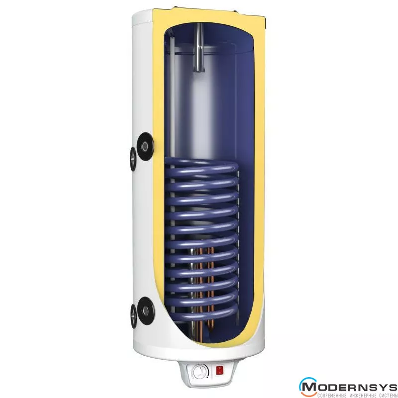 Бойлер має один низько розташований теплообмінник (змійовик) з великою площею поверхні теплообміну, який виготовлений із гофрованої нержавіючої сталі. Управління здійснюється за допомогою механічного терморегулятора.