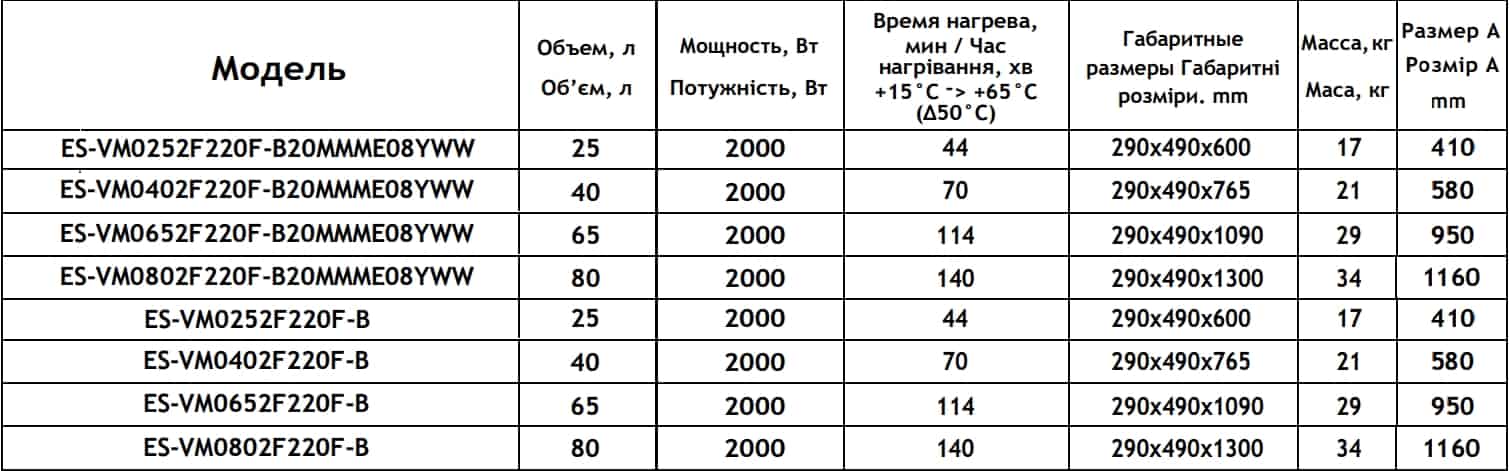 Технічні характеристики: Водонагрівач електричний Atlantic (Атлантик) Vertigo Basic 100 ES-VM0802F220F-B (2000W)