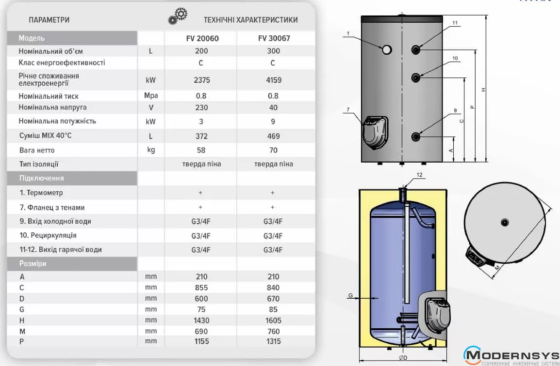 Технічні характеристики: Водонагрівач електричний Eldom Titan 300 9.0 kW FV30067