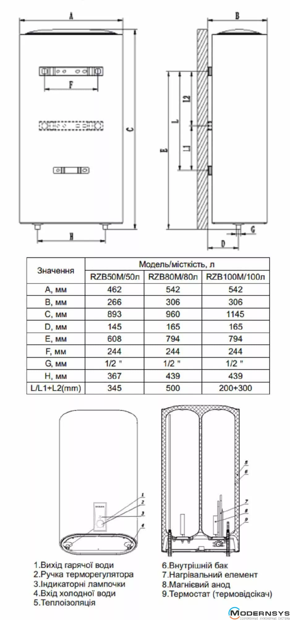 Технічні характеристики: Водонагрівач Ocean FLAT RZB100M, ET+DT BASIC 100л