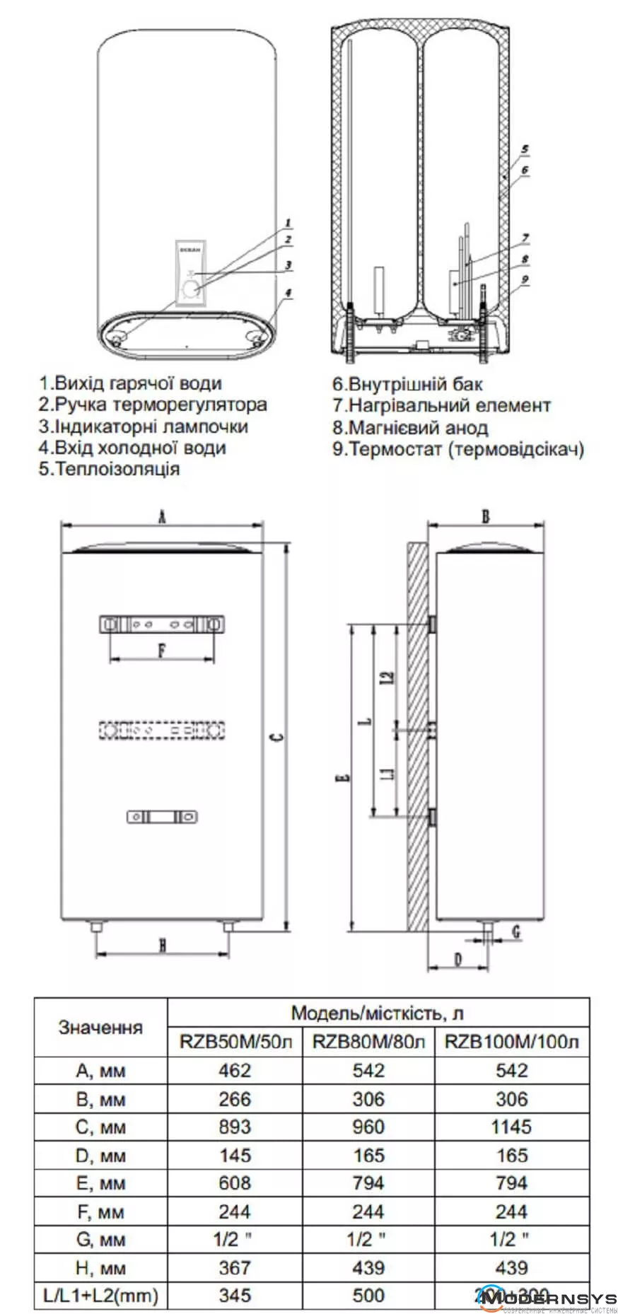 Технічні характеристики: Водонагрівач Ocean FLAT RZB50M, ET+WT BASIC 50л