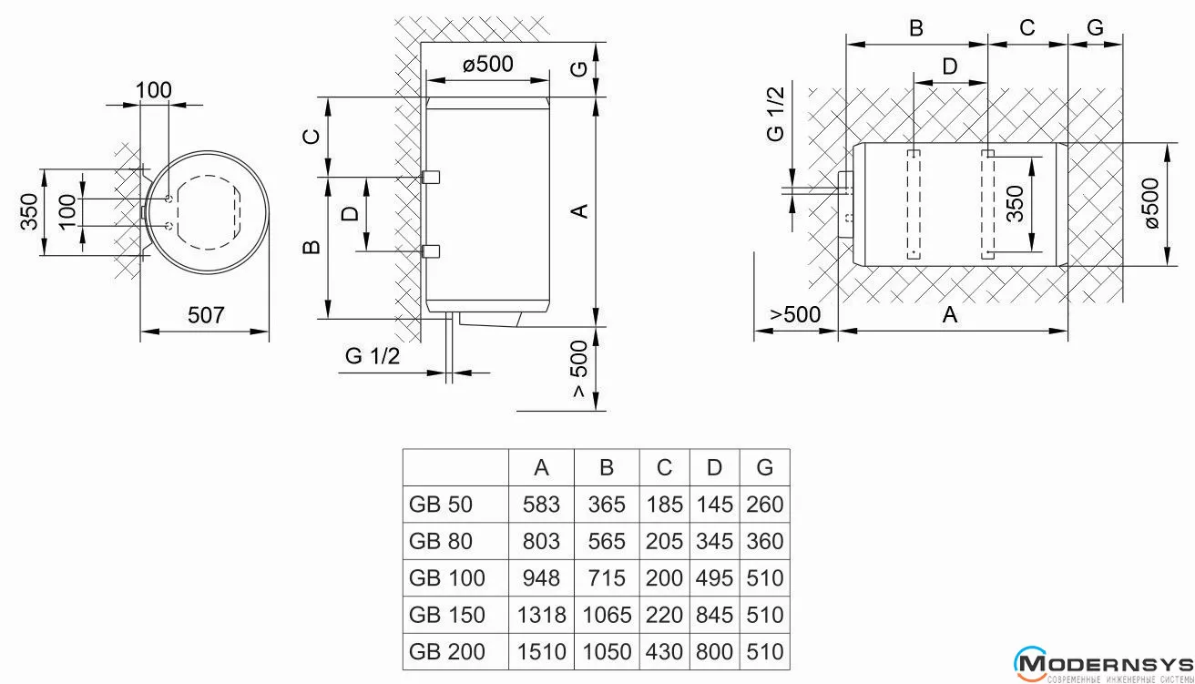 Технічні характеристики: Водонагрівач TIKI COMFORT U 200V9 2×1,0 кВт 200 л