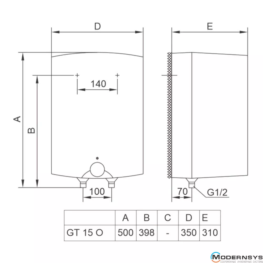Технічні характеристики: Водонагрівач TIKI MINI P 15V9 нижнє підключення 1×2,0 кВт 15 л