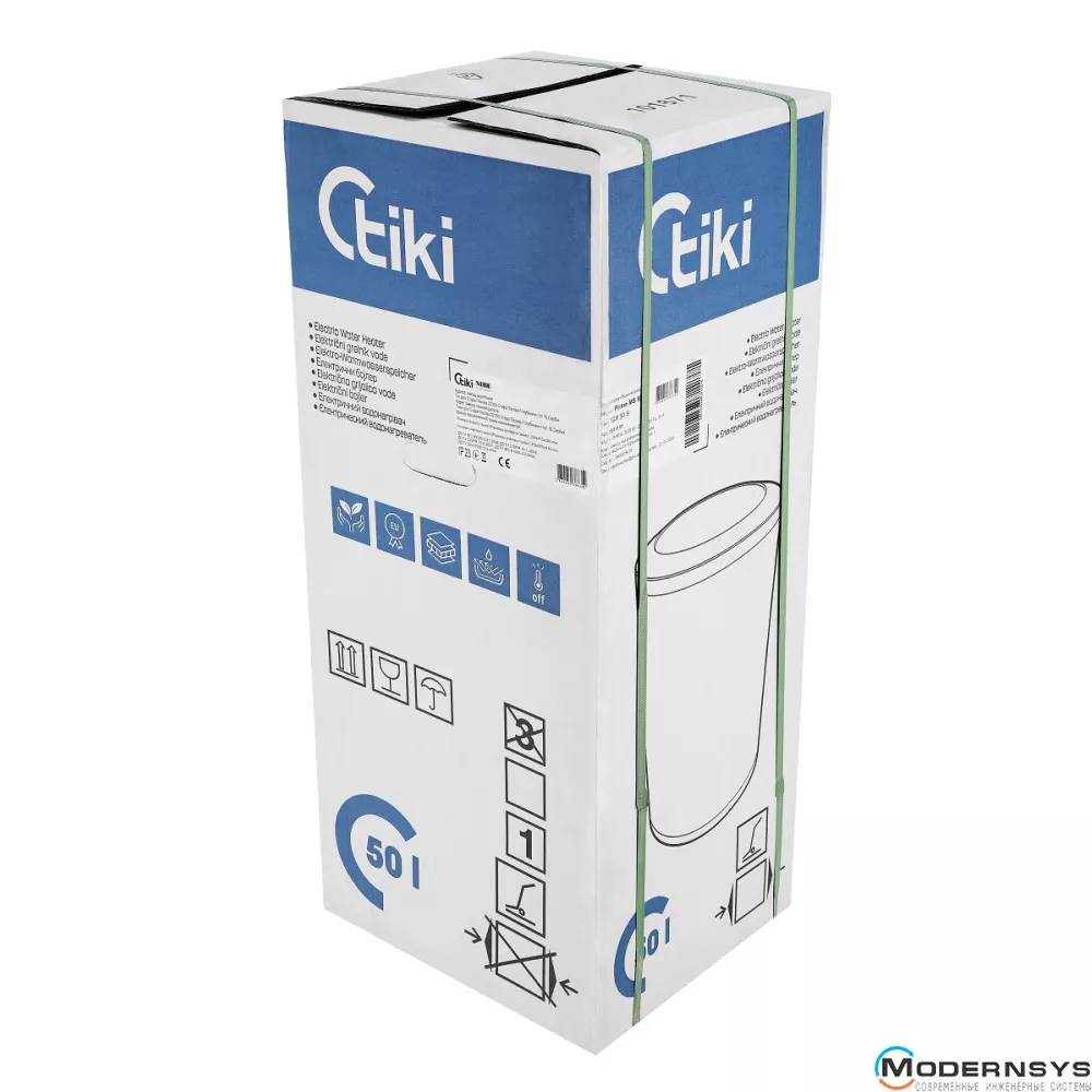TIKI Prime MS 50V9 - електричний накопичувальний водонагрівач з фактичним об'ємом емальованого бака 50 літрів та "мокрим" ТЕНом, потужністю 2 кВт. Монтаж бойлера настінний, вертикальний.