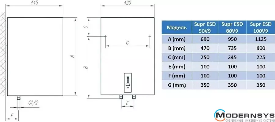 Технічні характеристики: Водонагрівач TIKI SUPR ESD 100V9 SMART 2×1,0 кВт 100 л