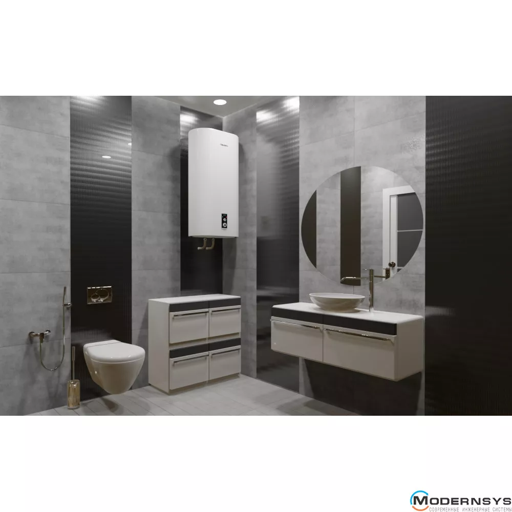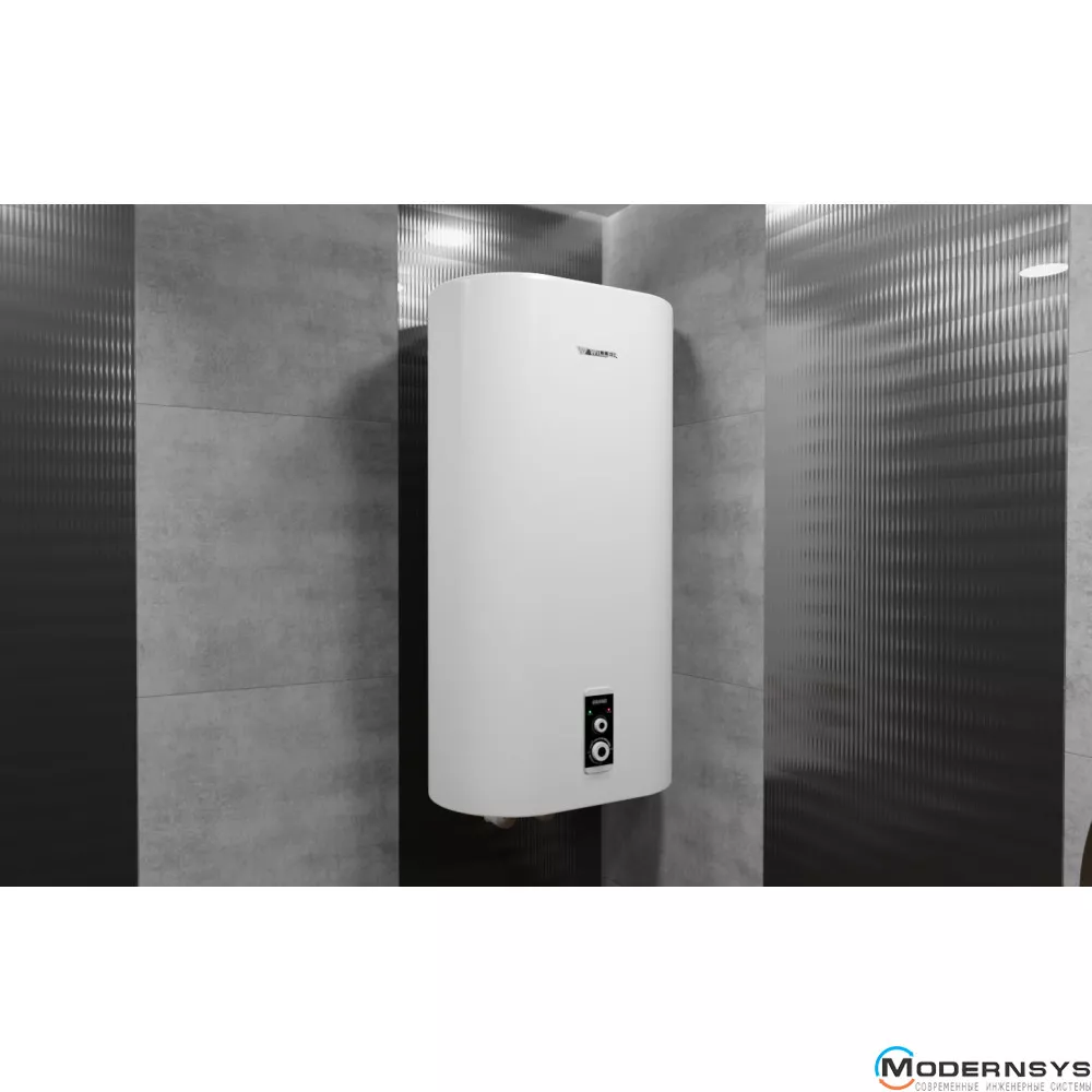 Плоский накопичувальний електричний водонагрівач з внутрішнім баком з емальованої сталі об'ємом 100 літрів. Оснащений двома сухими (захищеними) нагрівальними елементами загальною потужністю 2,0 кВт. Внутрішній бак, виготовлений із емальованої сталі, та захисний магнієвий анод забезпечують тривалий термін експлуатації.