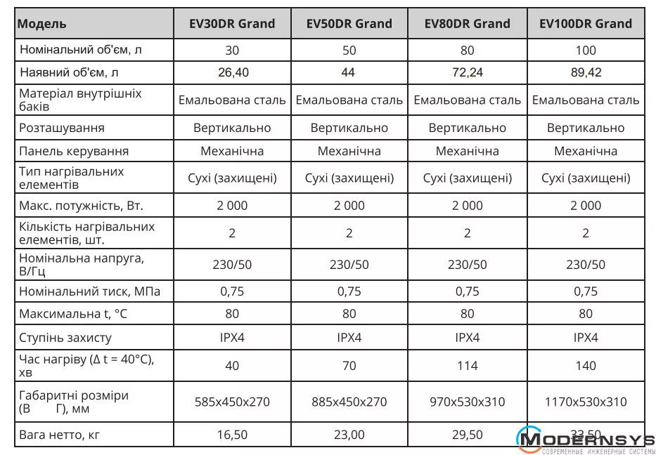 Технічні характеристики: Водонагрівач Willer (Виллер) EV100DR Grand (колір дерево венге)