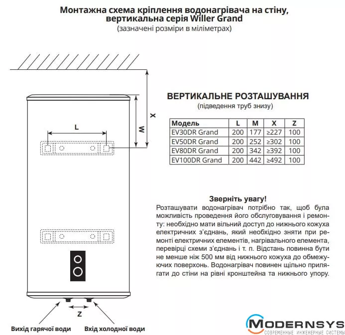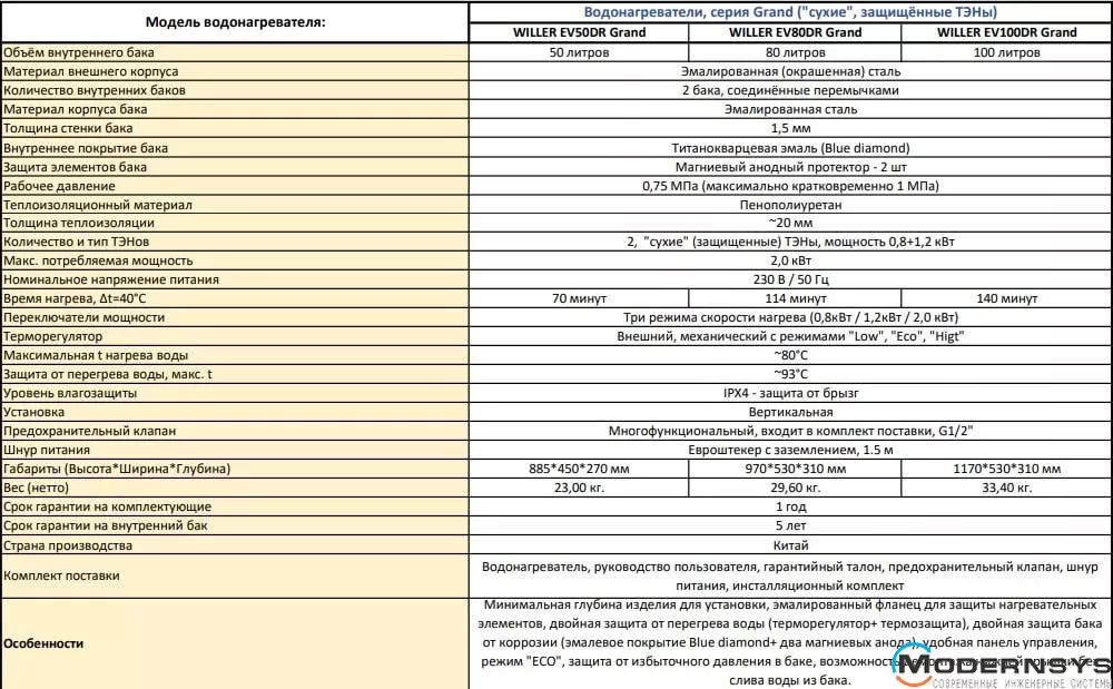 Технічні характеристики: Водонагрівач Willer (Виллер) EV30DR Grand (колір чорний матовий)
