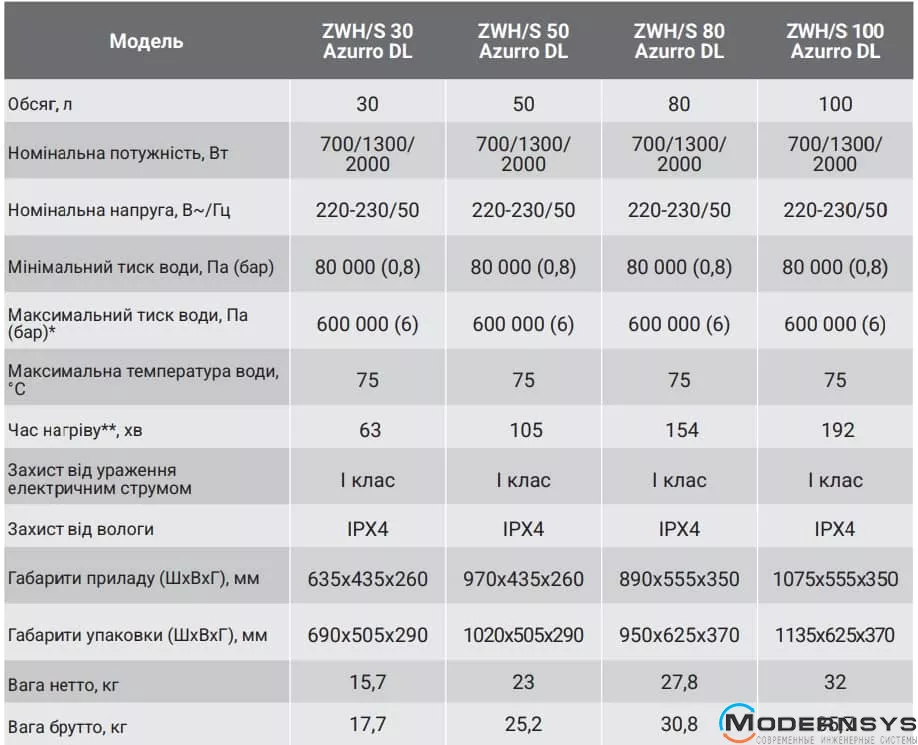 - Гарантія: 12 місяців офіційної від виробника на електричні елементи + 96 місяців на бак