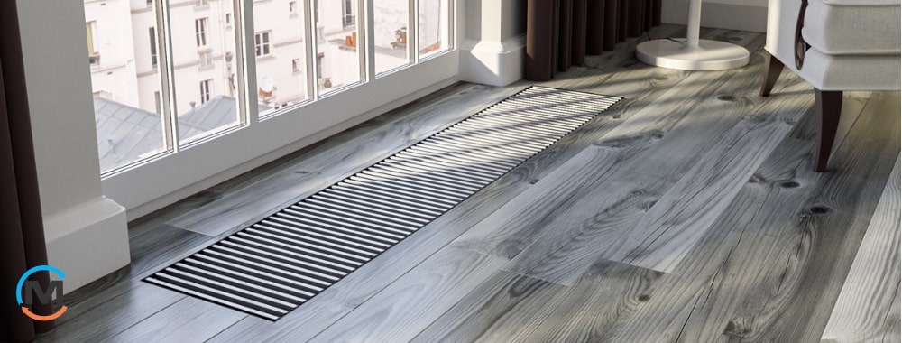Вбудований в підлогу конвектор без вентилятора, який також прийнято називати внутрішньопідлоговим радіатором з природною конвекцією, комплектується корпусом з нержавіючої сталі або міді, всередині якого знаходиться мідно-алюмінієвий теплообмінник, через який циркулює теплоносій, а зверху розташовується декоративна решітка з металу, дерева або штучного каменю . В процесі функціонування такі пристрої за допомогою теплообмінника нагрівають повітря, який відразу піднімається вгору, витісняючи холодне повітря, який потім потрапляє всередину конвектора. Таким чином створюється постійна циркуляція теплого повітря в приміщенні, який швидко прогріває його від підлоги до стелі. при цьому, внутрішньопідлогові конвектори без вентиляторів виявляються не тільки ефективними, але і економічними, а також володіють іншими важливими плюсами, докладно розглянутими нижче: