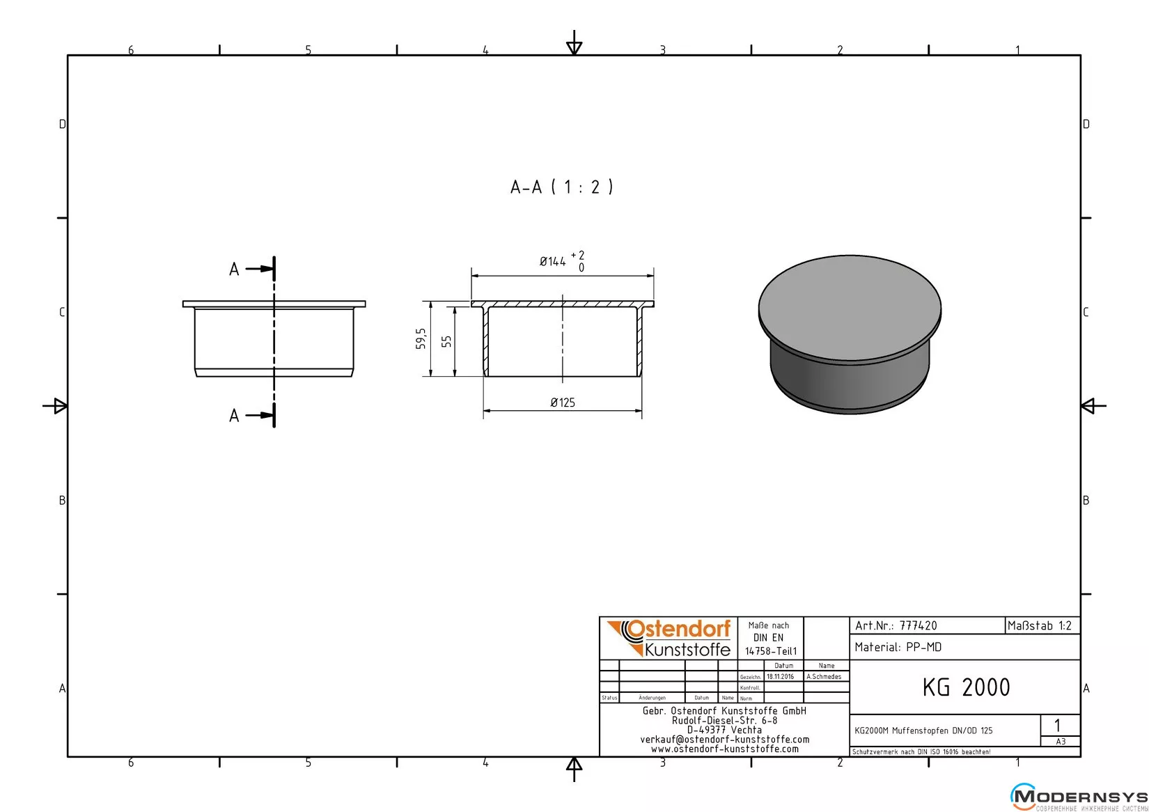 Технічні характеристики: Заглушка каналізаційна Ostendorf (Остендорф) KG2000M 125 мм