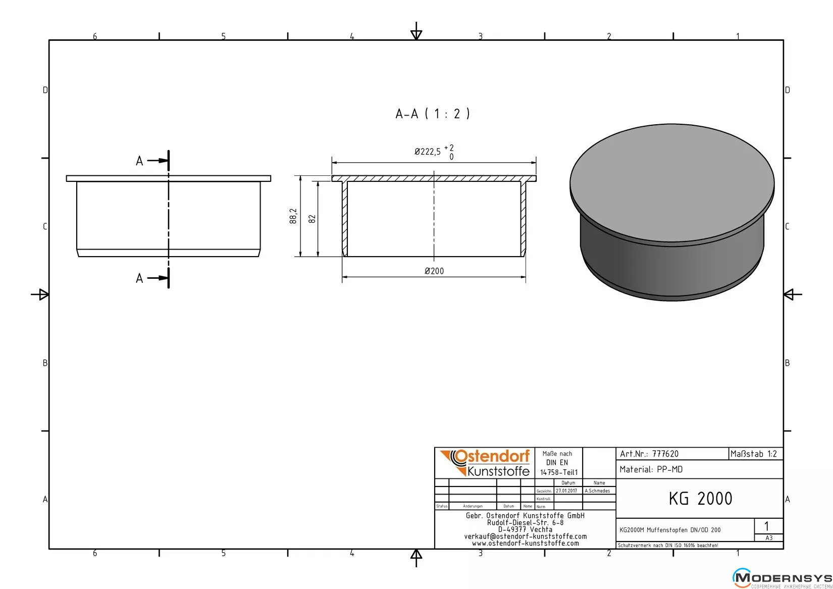 Технічні характеристики: Заглушка каналізаційна Ostendorf (Остендорф) KG2000M 200 мм