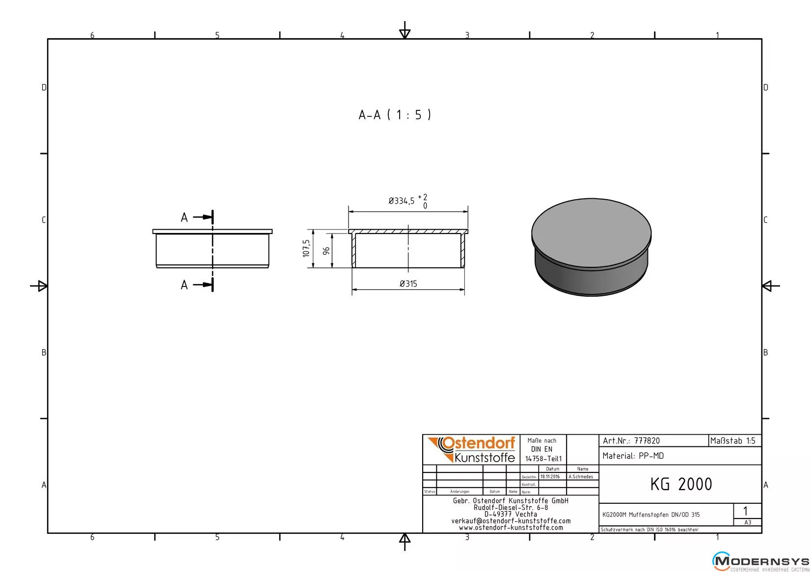 Опис: Заглушка каналізаційна Ostendorf (Остендорф) KG2000M 315 мм