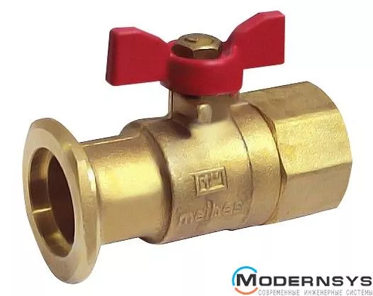 Запірний кульовий кран з фірмовим фланцем Майбес (без накидної гайки та прокладки) для підключення циркуляційного насоса. Усередині крана розташовується вбудований зворотний клапан.