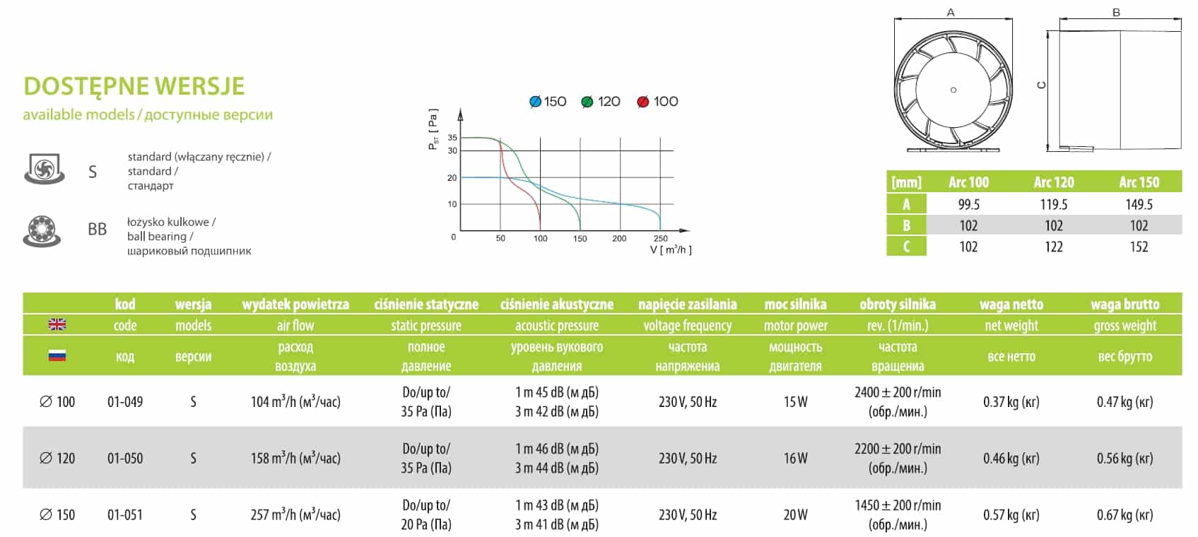 Вытяжные вентиляторы серии AirRoxy ARC S предназначены для стабильной или периодической работы. Модель сочетает в себе практичность, функциональность и продуктивность. Вентилятор отличается сниженным уровнем шума, благодаря чему подойдут для установки в коммерческих или бытовых помещениях. Влагозащищенность корпуса позволит установить технику во влажном помещении, не опасаясь, что влага приведет к выходу из строя.