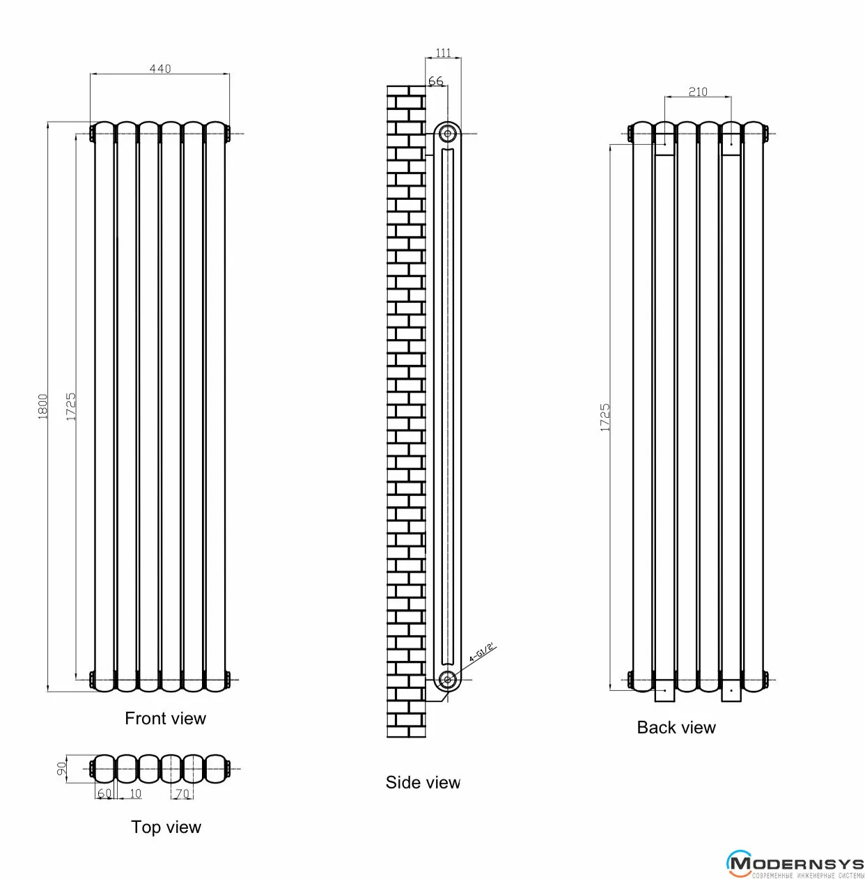 Технические характеристики: Вертикальный дизайнерский радиатор ARTTIDESIGN (Арттидизайн) Verona 6/1800/440 белый матовый