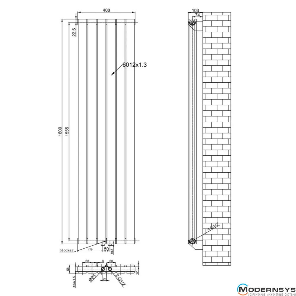 Технические характеристики: Вертикальный радиатор отопления ARTTIDESIGN (Арттидизайн) Livorno II 6/1600/408/50 белый матовый