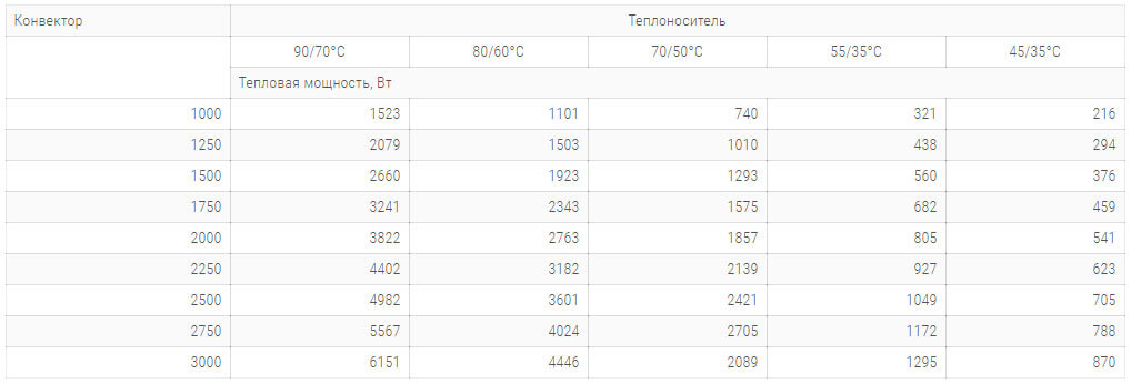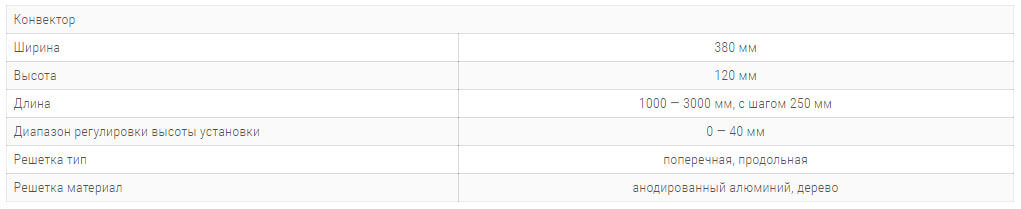 Таблица характеристик конвекторы CARRERA SV2 Hydro 120 принудительная конвекция два теплообменника 380x120мм с дренажным отверстием
