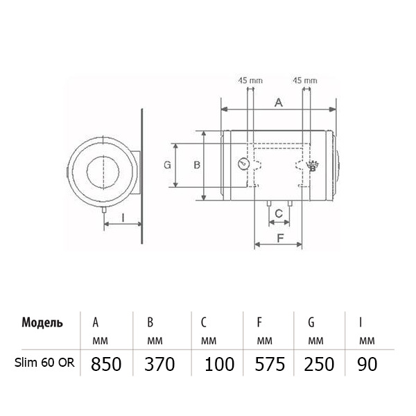 Технические характеристики: Водонагреватель Bandini (Бандини) Braun 60 л горизонтальный 2,0 кВт - SLIM 60 OR
